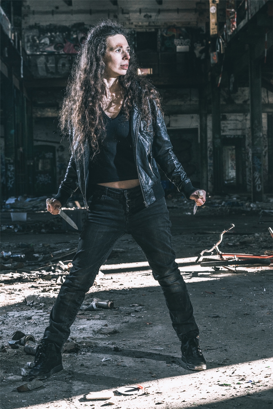 Eva, Nachrichtensprecherin, Rustikaldomina, Kandidatin eines Mörder-Castings, Jongleurin